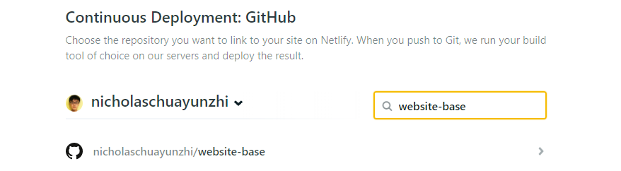 4. Finally, select the repository containing your MarkBind site.