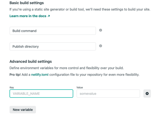 • Show advanced: Add a new variable with the key as NODE_VERSION and the value as 18 or higher