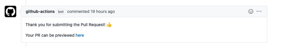 Finally, you may open a PR to the repo of your MarkBind site. If everything is configured correctly, after a few minutes, you should be able to see a github-actions bot automatically commenting on the PR with a link to preview the updated MarkBind site.