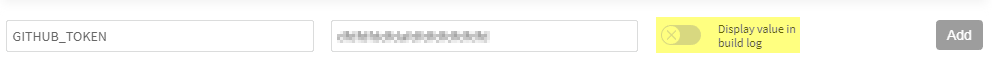 4. Under the heading Environment variables, add a custom environment variable named GITHUB_TOKEN, with the value set to the personal access token that was generated in the first step. Ensure that you toggle variable encryption by clicking on the padlock.
